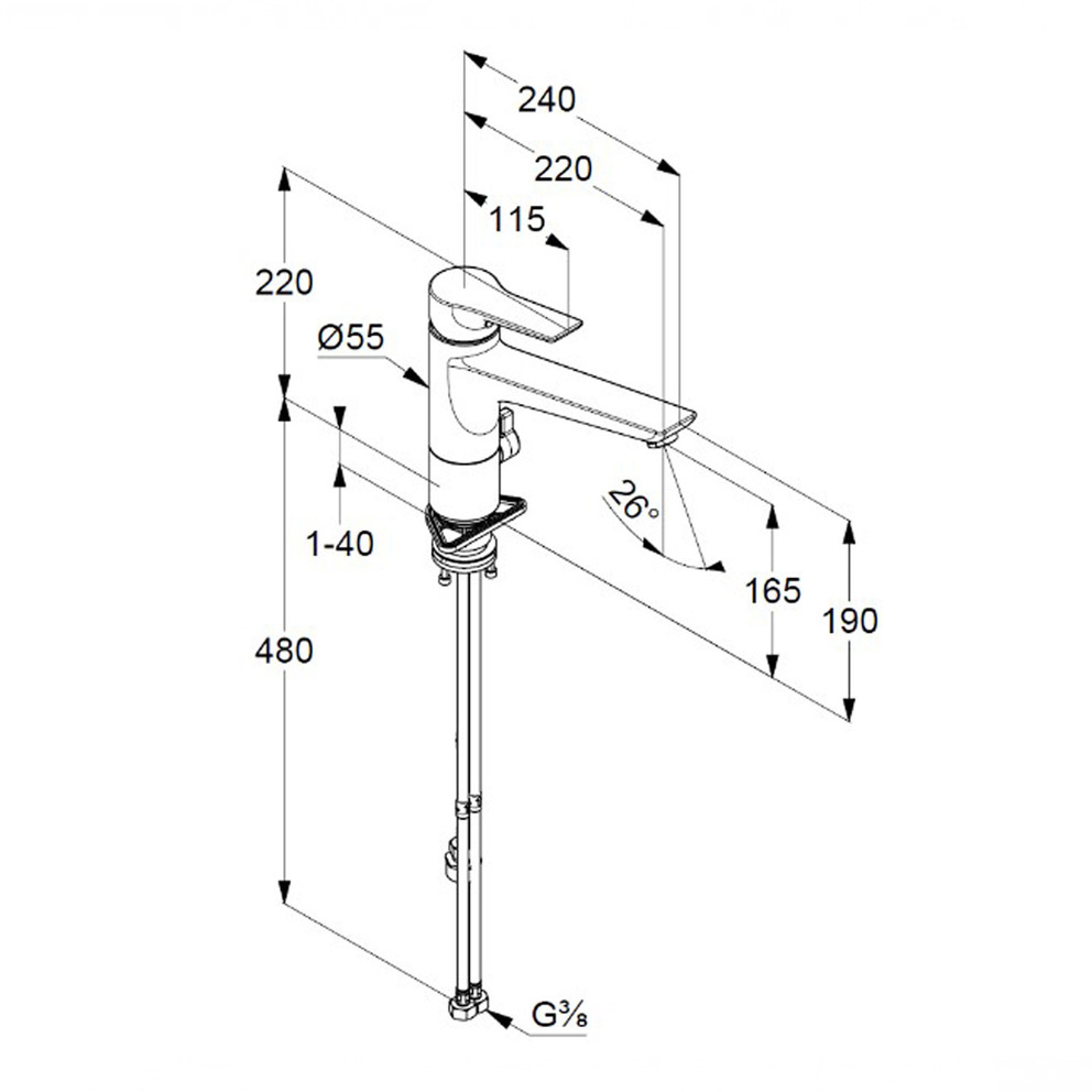 G 3/8 DVGW zugelassen, Schaftbefestigung