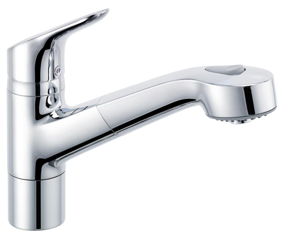 schwenkbare (110°), herausziehbare Geschirrbrause, autom. Umstellung: Brause/Strahl,