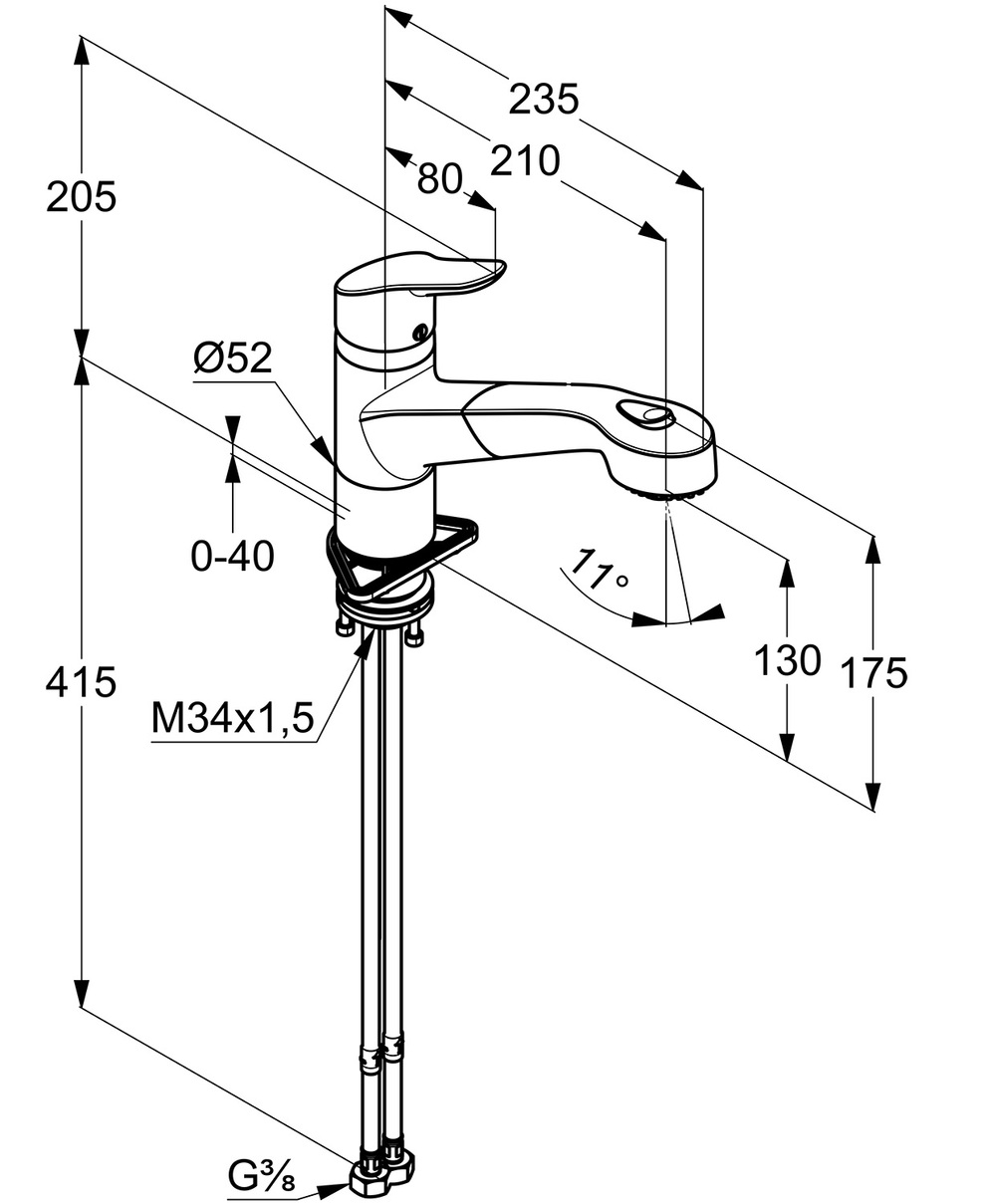 eigensicher gegen Rückfließen, flexible Anschlüsse G 3/8, mit Schaftbefestigung