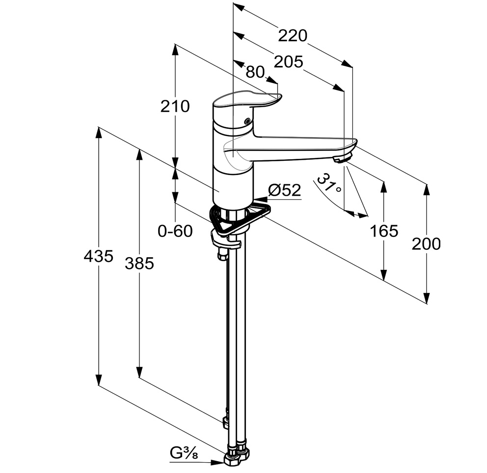 Höhe: 210 mm (geschlossener Hebel)
