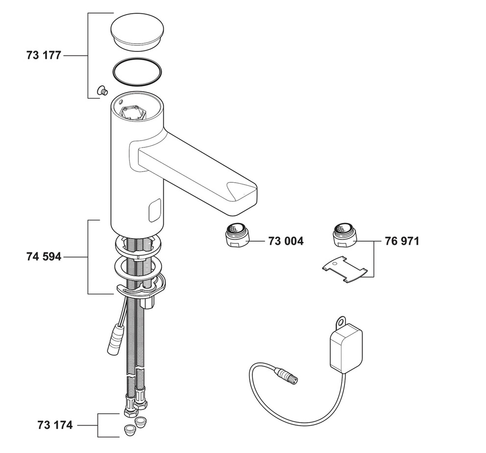 Mischwelle und Temperaturwahlgriff, mit optischer Gegenstandserfassung, Elektronikmodul,