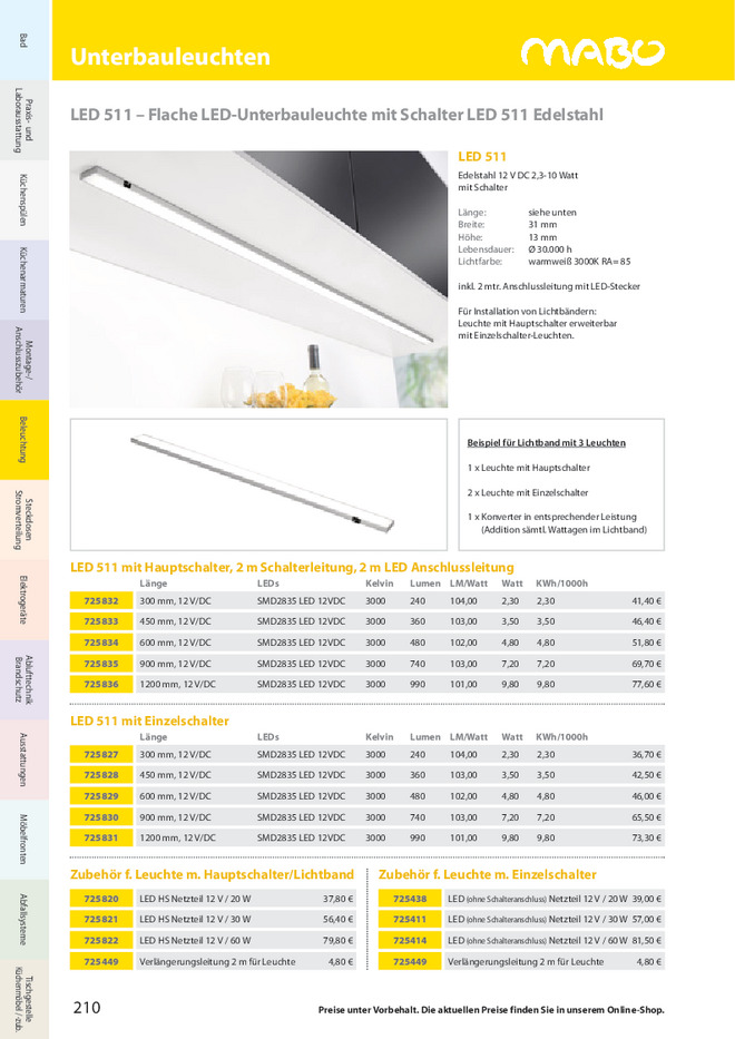 Flache LED-Unterbauleuchte mit Schalter LED 511 Edelstahl