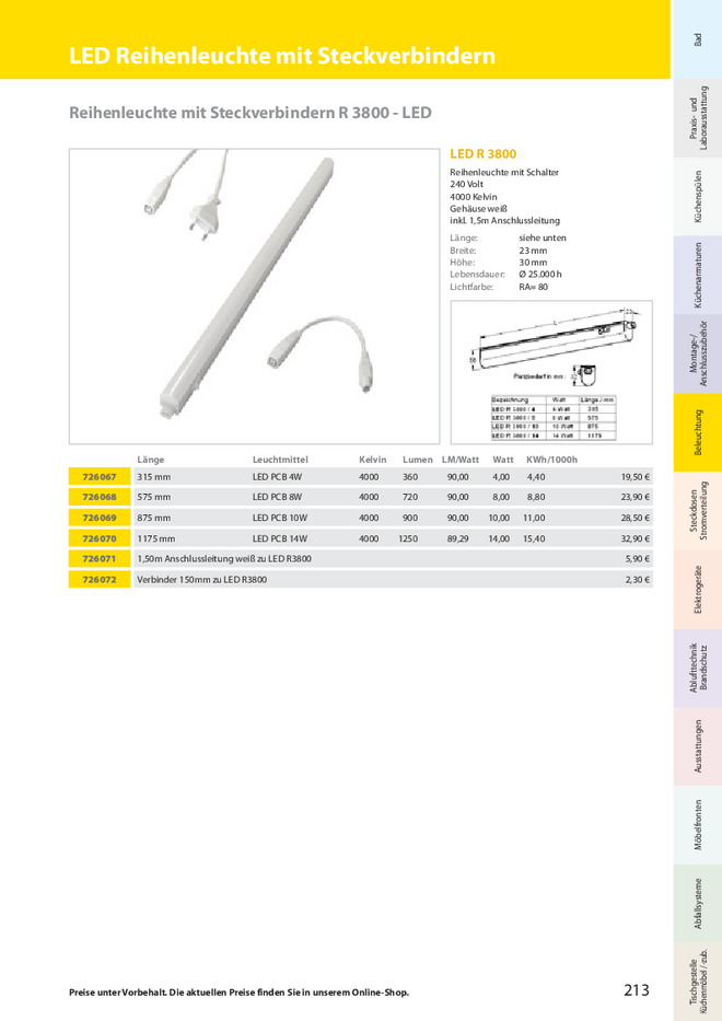 Reihenleuchte mit Schalter