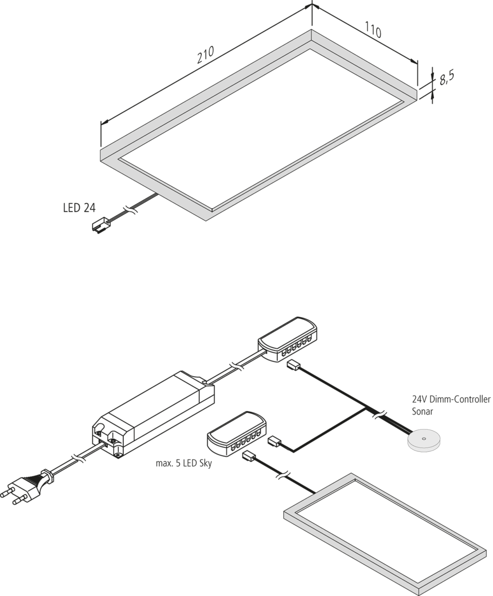 Alle Leuchten inkl. 2,5 mtr. Anschlussleitung mit LED 24-Stecker.
