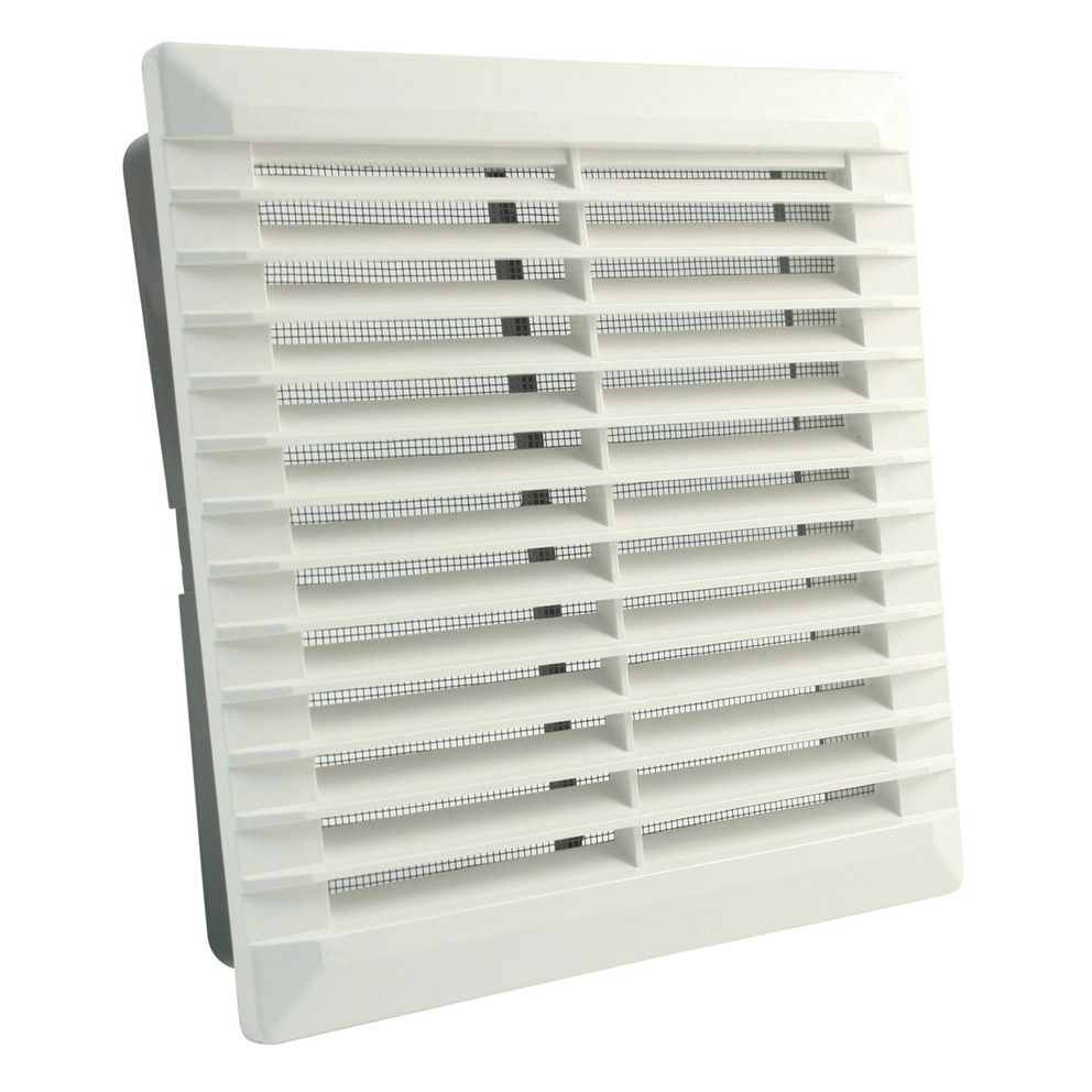Lüftungsgitter für innen und außen, zum Einbau ins Mauerwerk, mit Fliegengaze und Einbaurahmen, 200 x 200 mm, Farbe: weiß