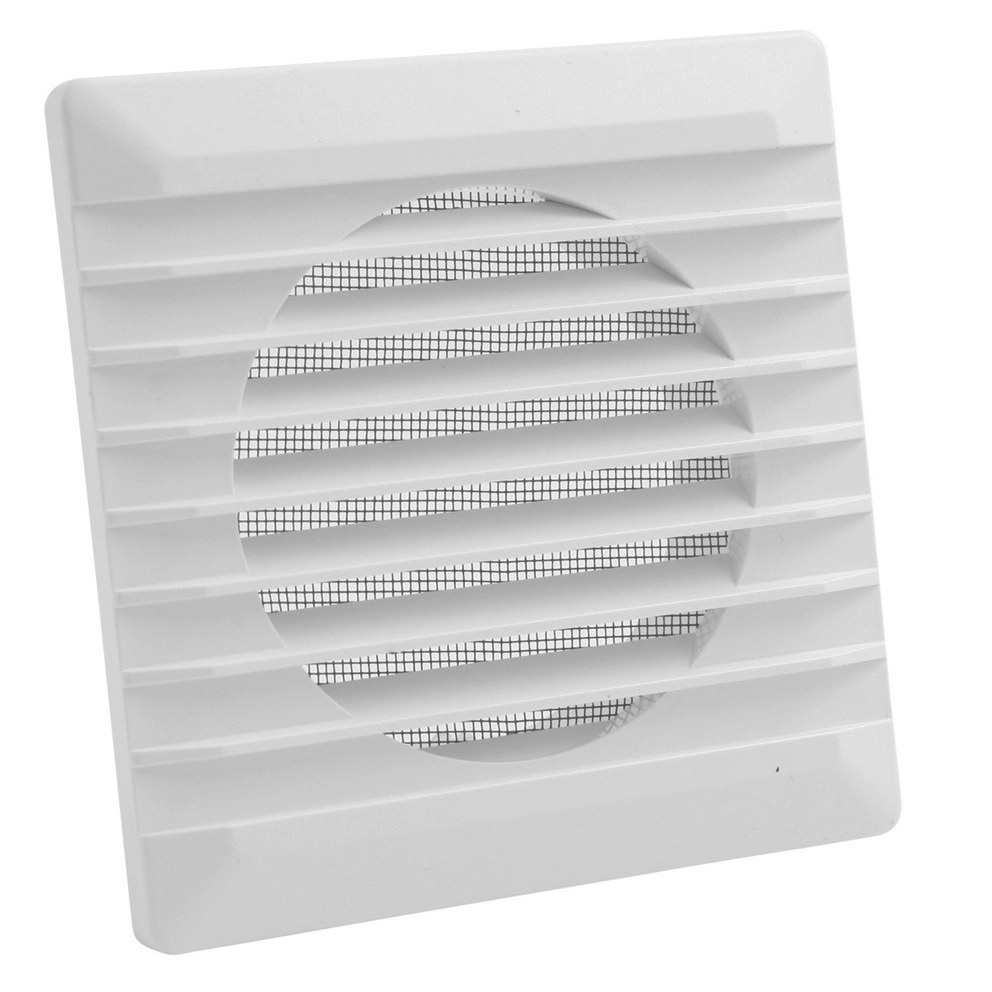 Lüftungsgitter für innen und außen, mit Fliegengaze, Rohranschluss Ø 100 mm, 140 x 140 mm, Farbe: weiß
