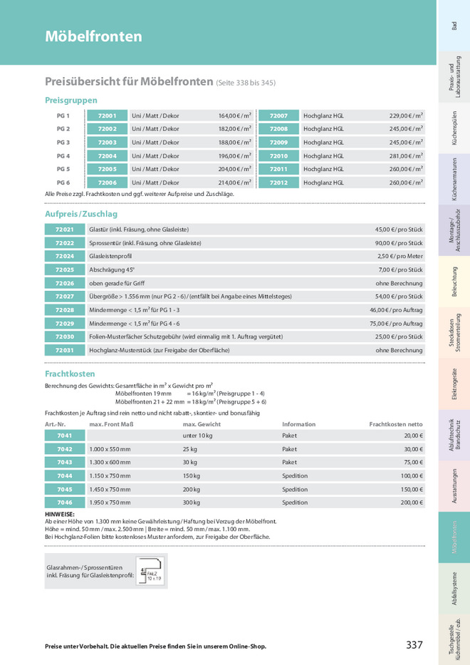 Unsere Möbelfronten bestehen aus stabilen MDF-Trägerplatten, einseitig mit Melamin in Standardweiß (weitere Farben erhältlich beschichtet und mit