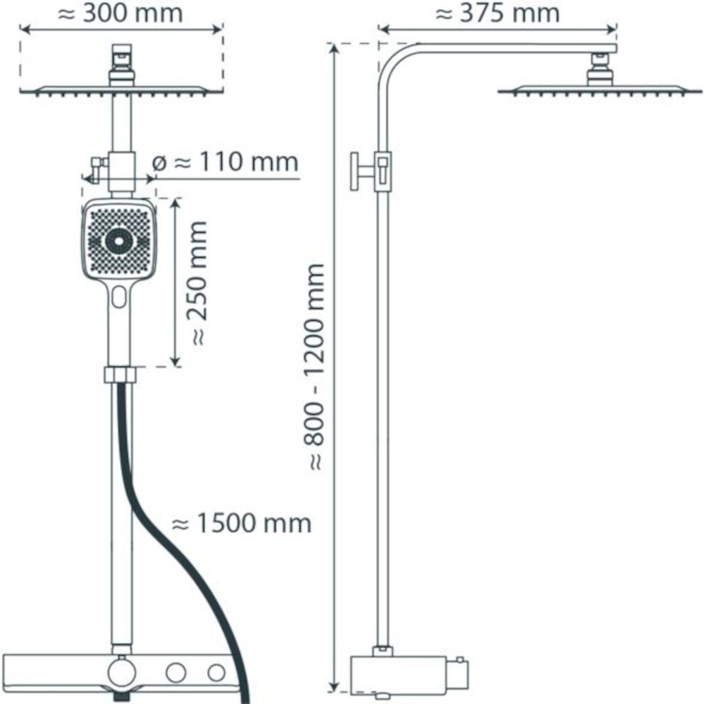 Das Duschset verfügt über eine hochwertige Edelstahl Regendusche. Die sehr flache Ausführung verhindert die Ansammlung von Wasserrückständen innerhalb der Kopfbrause