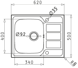 Edelstahl poliert, Ab- und Überlaufgarnitur mit 92 mm Drehexcenter,