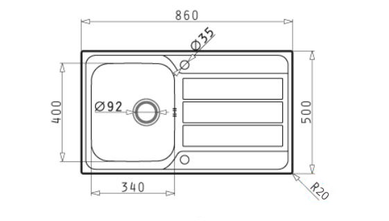 Länge: 860 mm, Breite: 500 mm