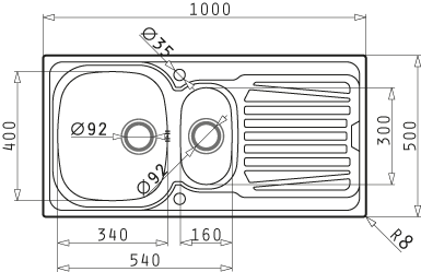 Edelstahl 18/10 glatt, matt finisch, reversibel, Ab- und Überlaufgarnitur mit 92 mm Drehexcenter,