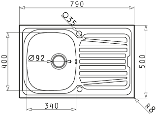 Edelstahl 18/10 glatt, matt finisch, reversibel, Ab- und Überlaufgarnitur mit 92 mm Drehexcenter,