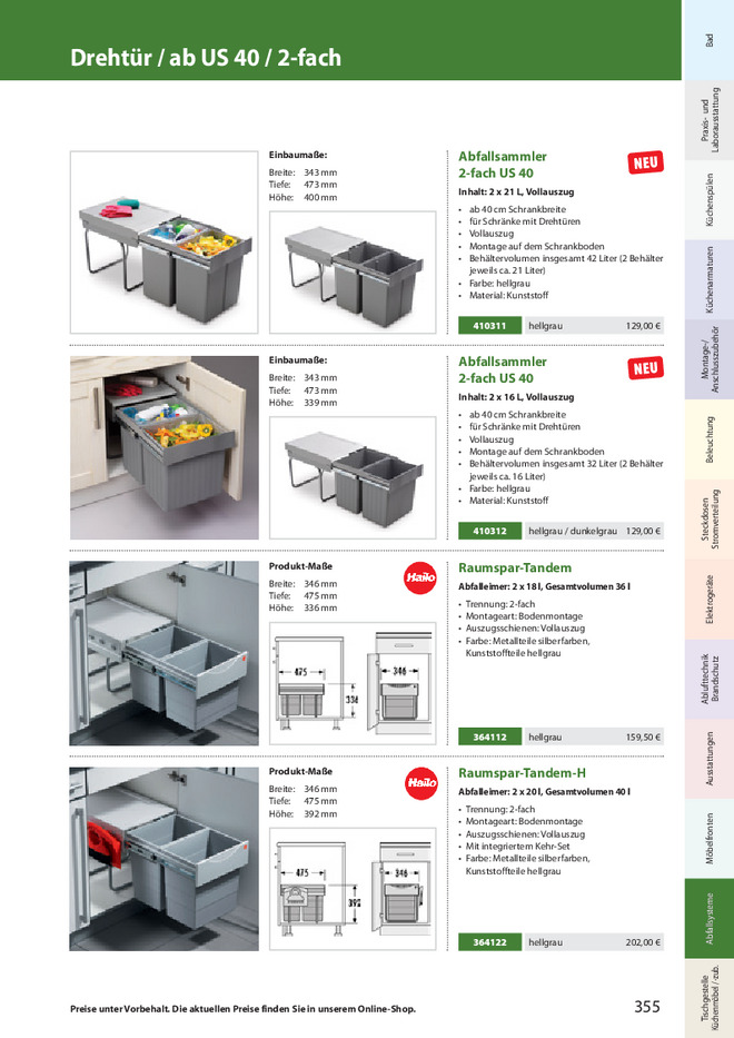 Abfalleimer: 2 x 18 l, Gesamtvolumen 36 l