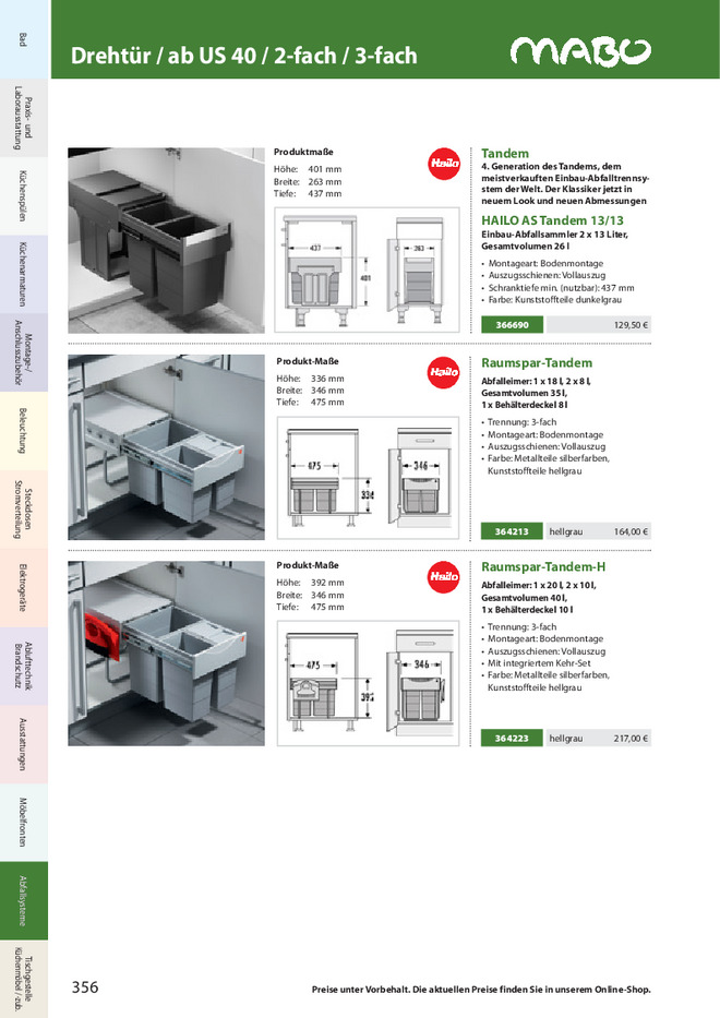Abfalleimer: 1 x 20 l, 2 x 10 l,