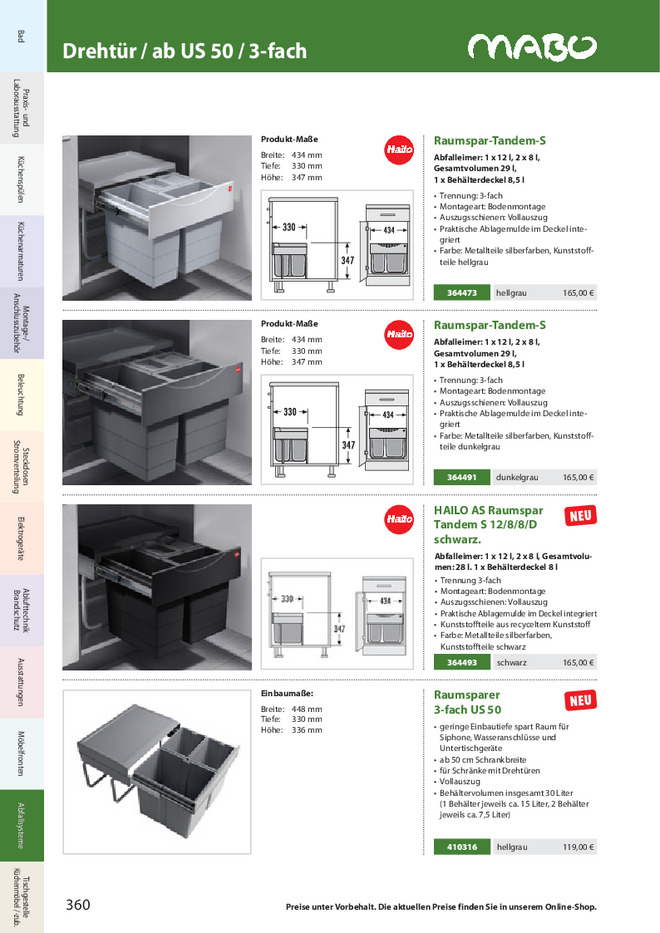 Abfalleimer: 1 x 12 l, 2 x 8,5 l,