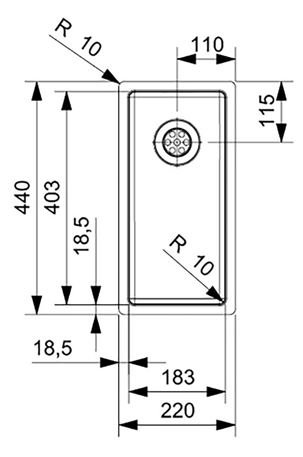 Spülengröße: 183 x 403 mm
