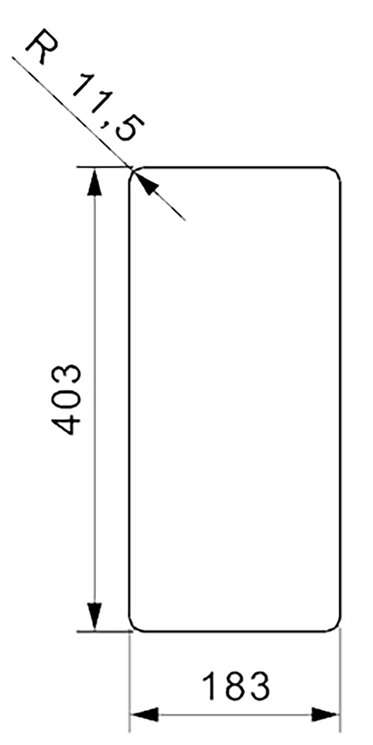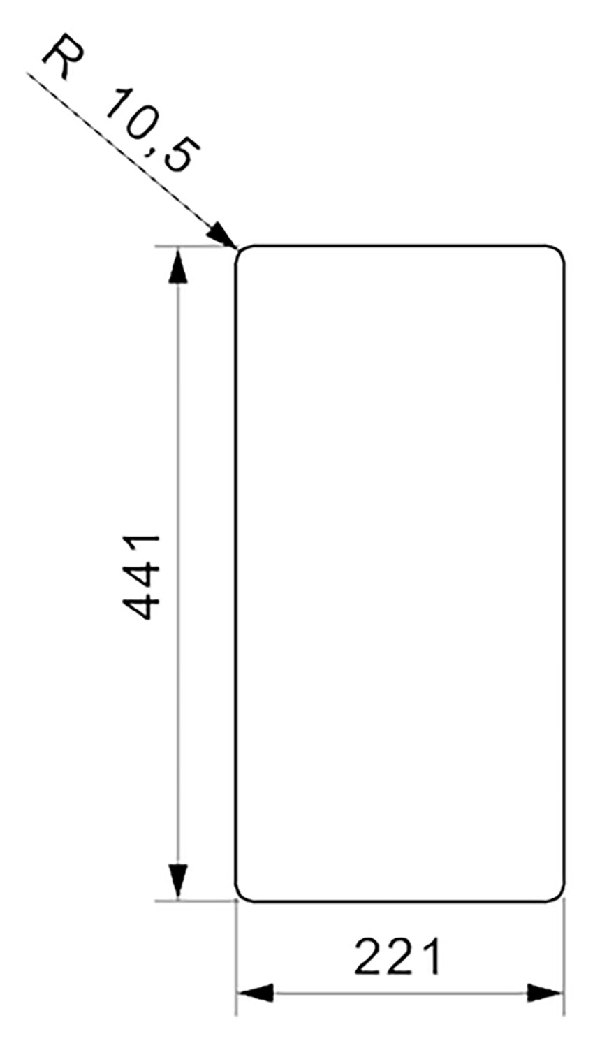 Die Spülbecken der Serie New York haben einen Innen- und Außenradius von 10 mm.