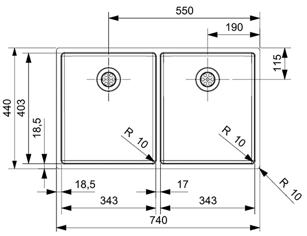 Spülengröße: 343 x 403 + 343 x 403mm