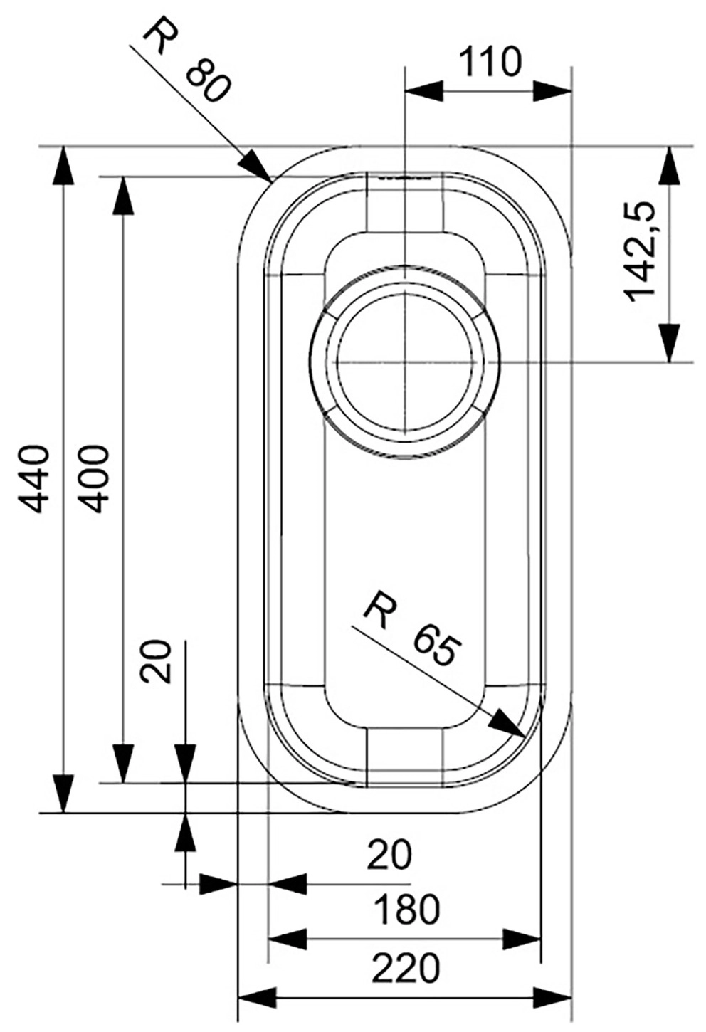 Spülengröße: 180 x 400 mm