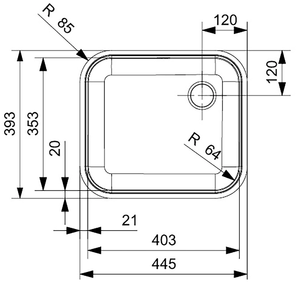 Spülengröße: 403 x 353 mm