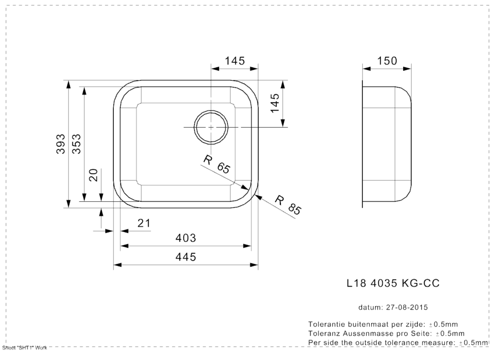 Spülengröße: 403 x 353 mm