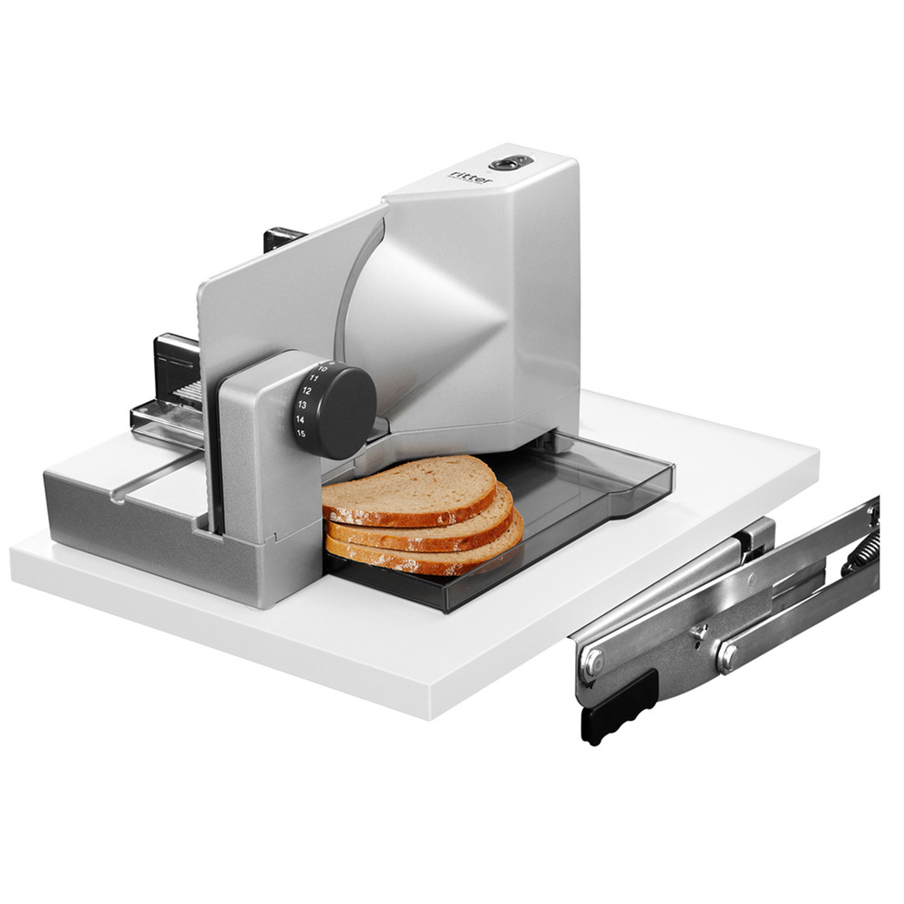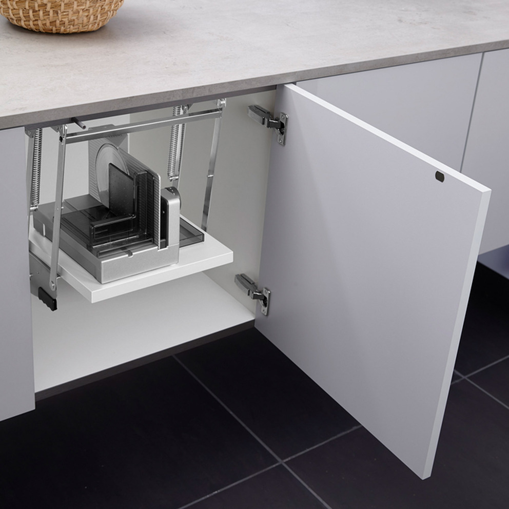 Der Einbau-Allesschneider E 118 wird auf einer Schwenkmechanik* montiert.