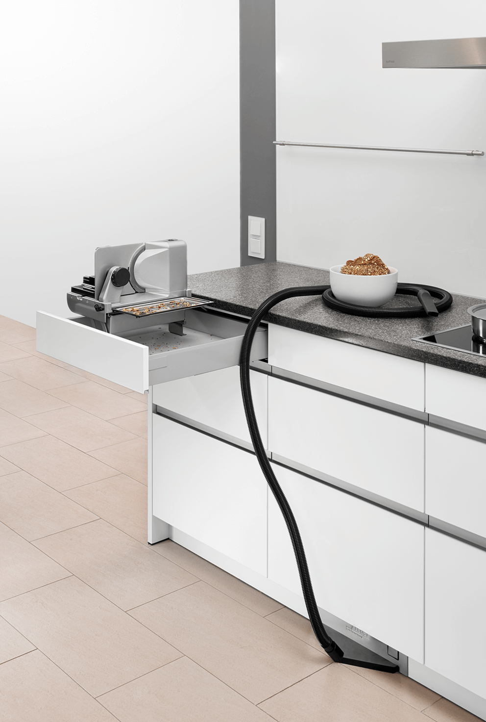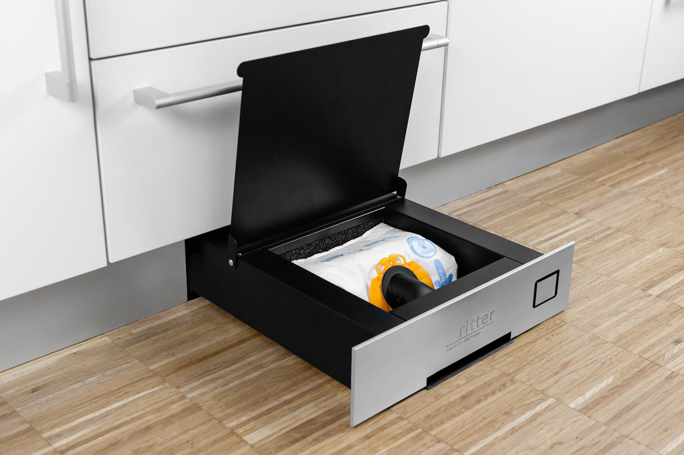 Weise, da er im Möbelsockel platzsparend verstaut und immer
