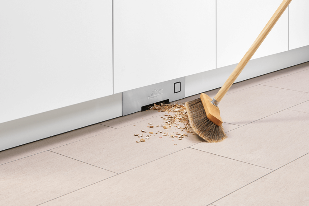 Der Einbau-Sockelsauger in Edelstahloptik ersetzt den umständlichen