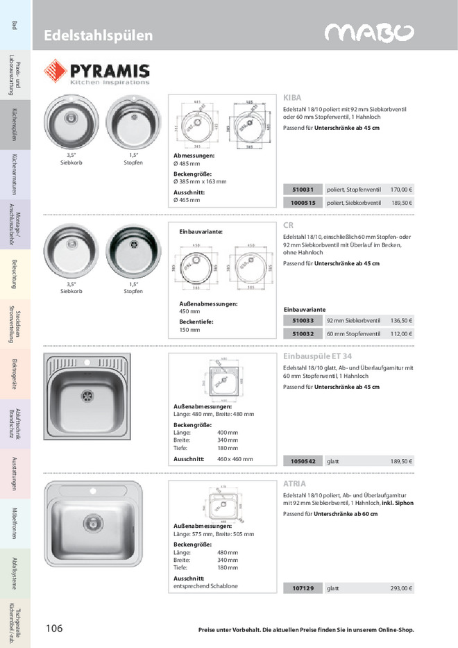 Edelstahl 18/10, einschließlich 60 mm Stopfenventil
