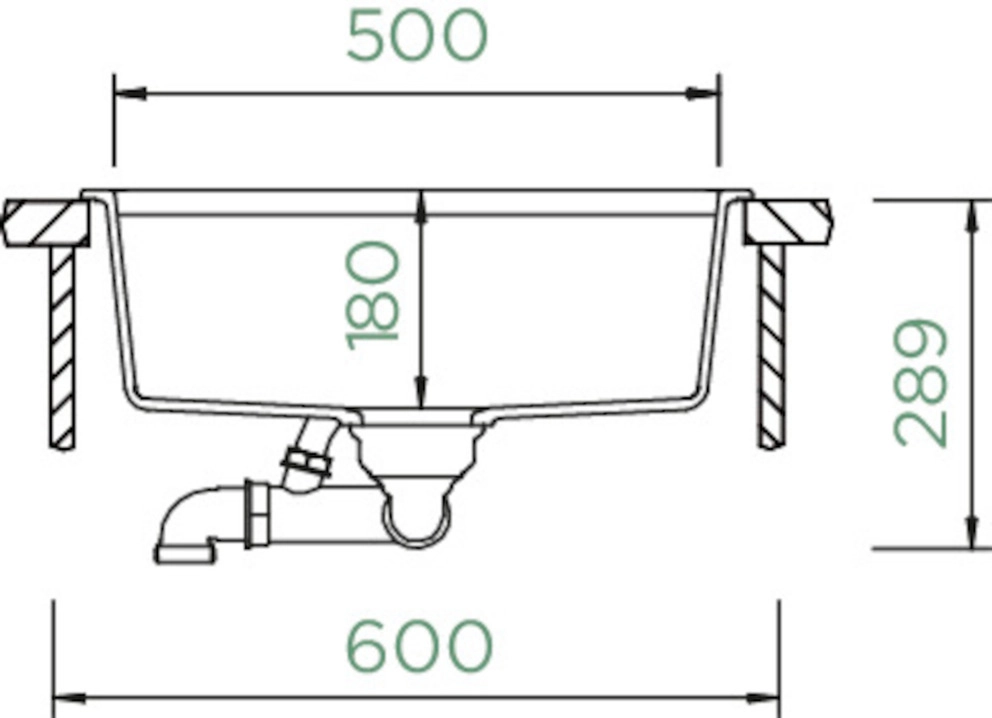 Beckeninnenmaß: 500 × 400 × 180 mm