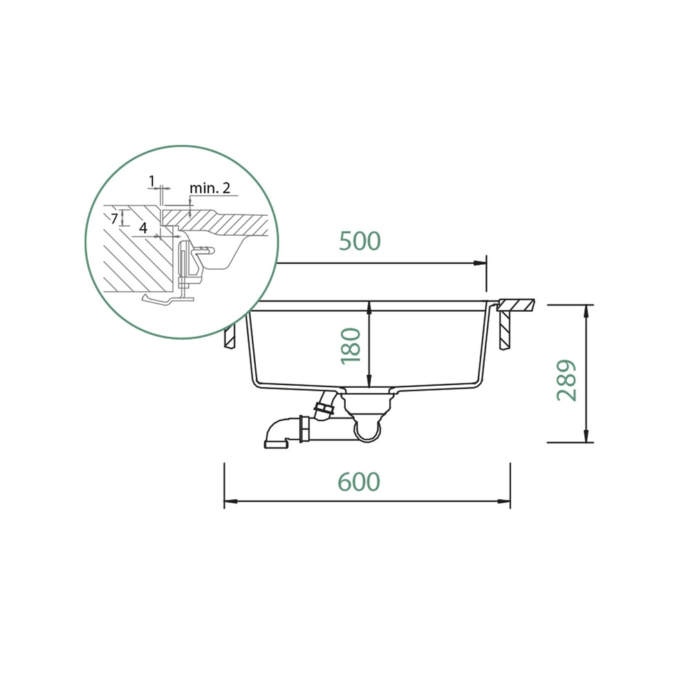 Inklusives Zubehör: Ablaufgarnitur mit Excenterbedienung, 2x2 Design Abtropfgitter