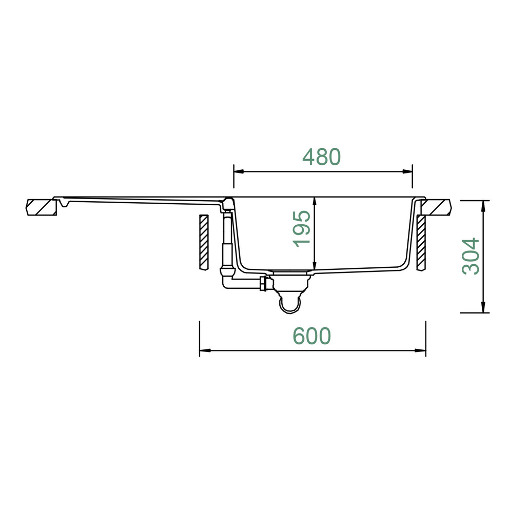 Beckeninnenmaß: 480 × 440 × 195 mm