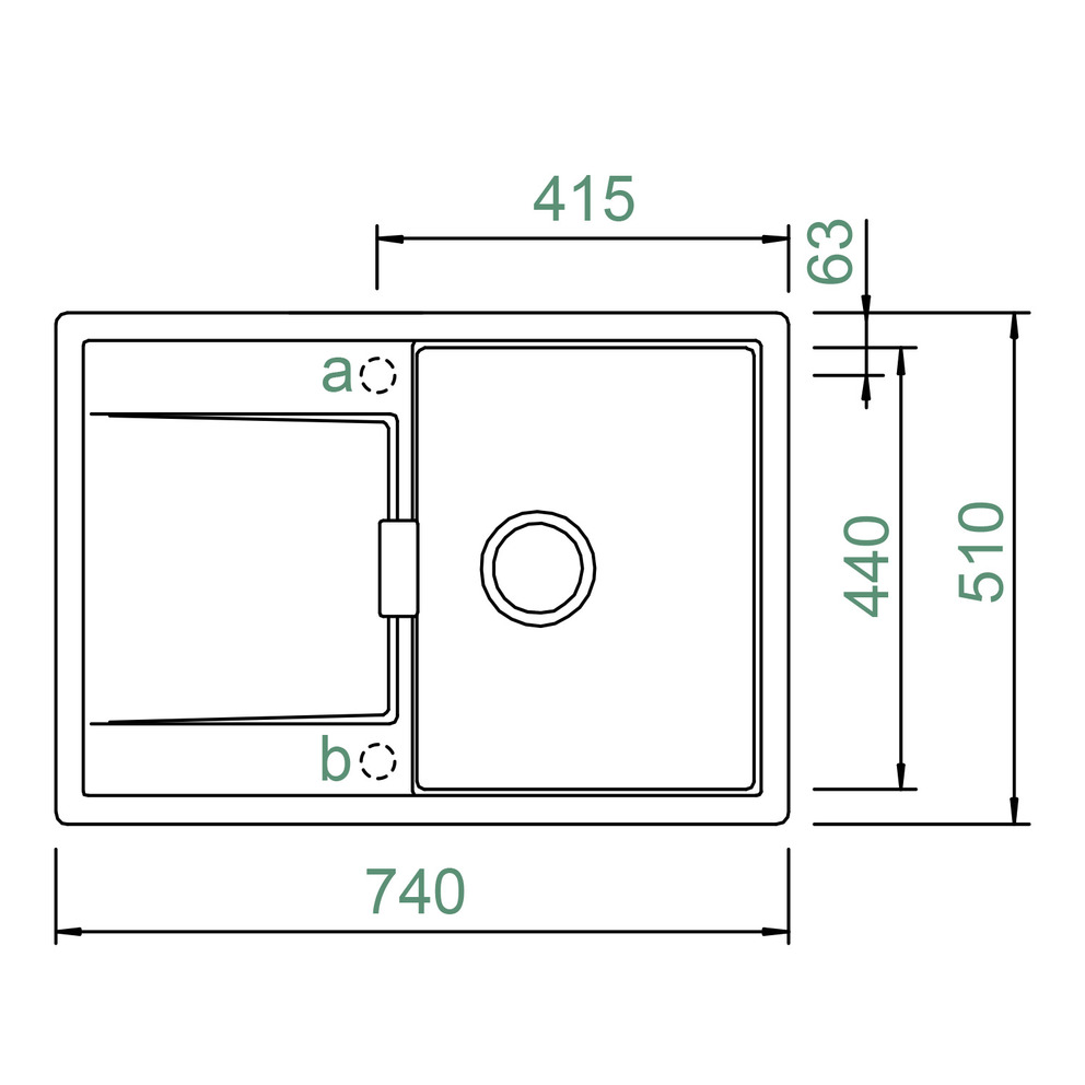 Beckeninnenmaß: 340 × 440 × 195 mm