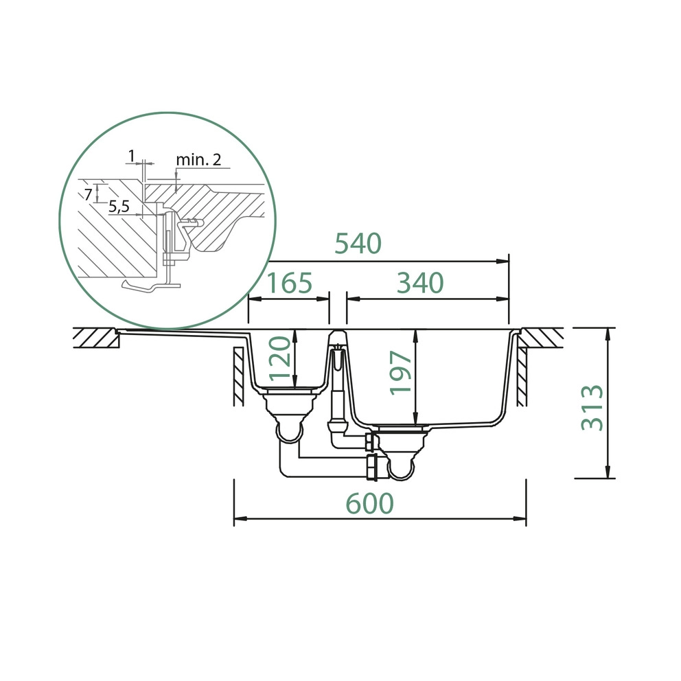 Inklusives Zubehör: Ablaufgarnitur mit Excenterbedienung, Diamantbohrer light, Mini Care Set