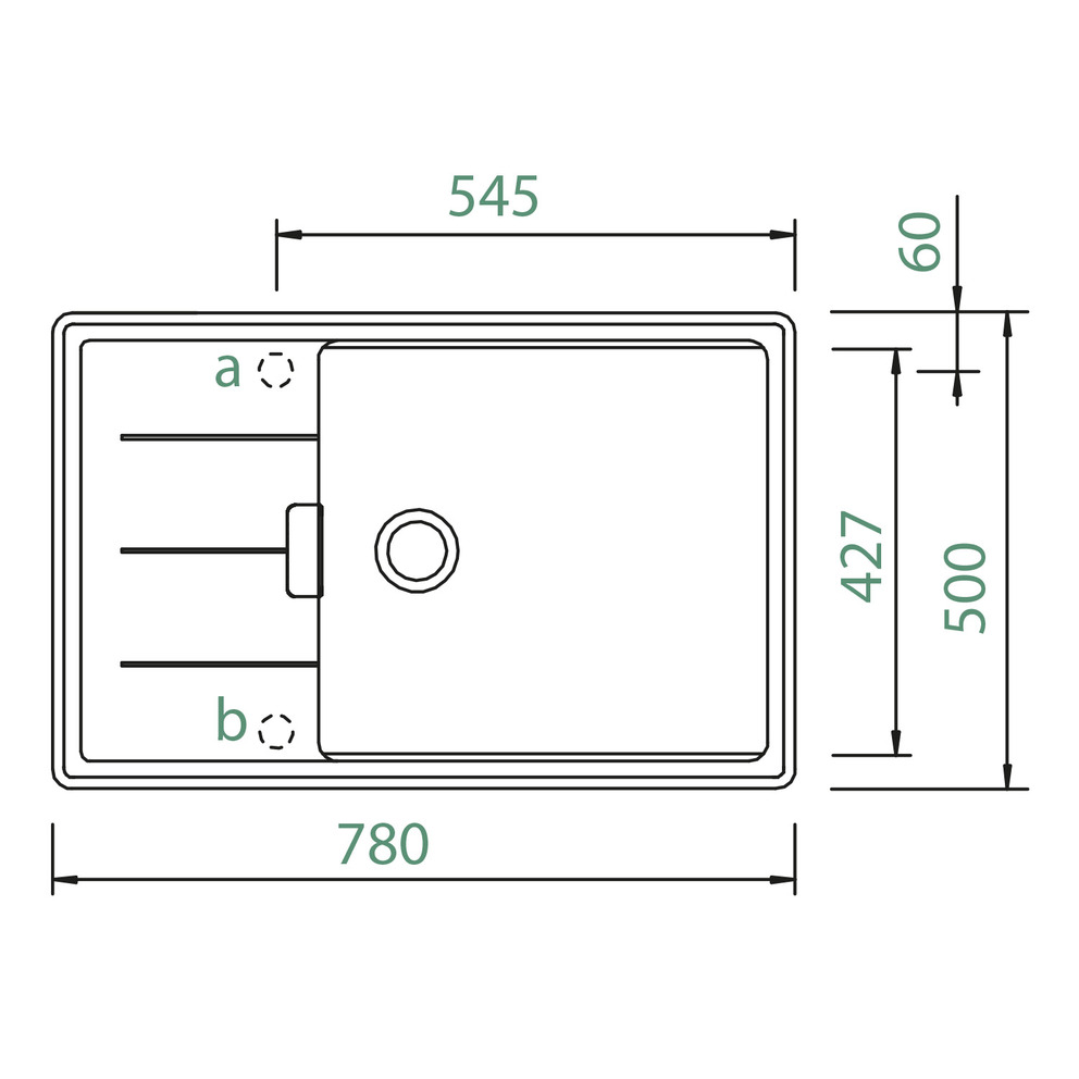Beckeninnenmaß: 472 × 427 × 198 mm
