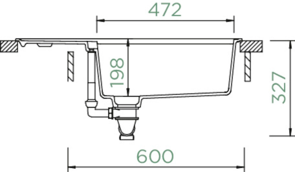 Beckeninnenmaß: 472 × 427 × 198 mm