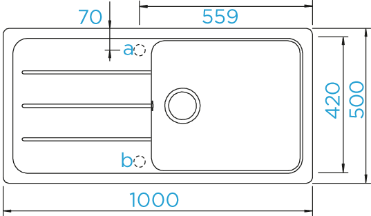 Beckeninnenmaß: 480 x 420 x 190 mm