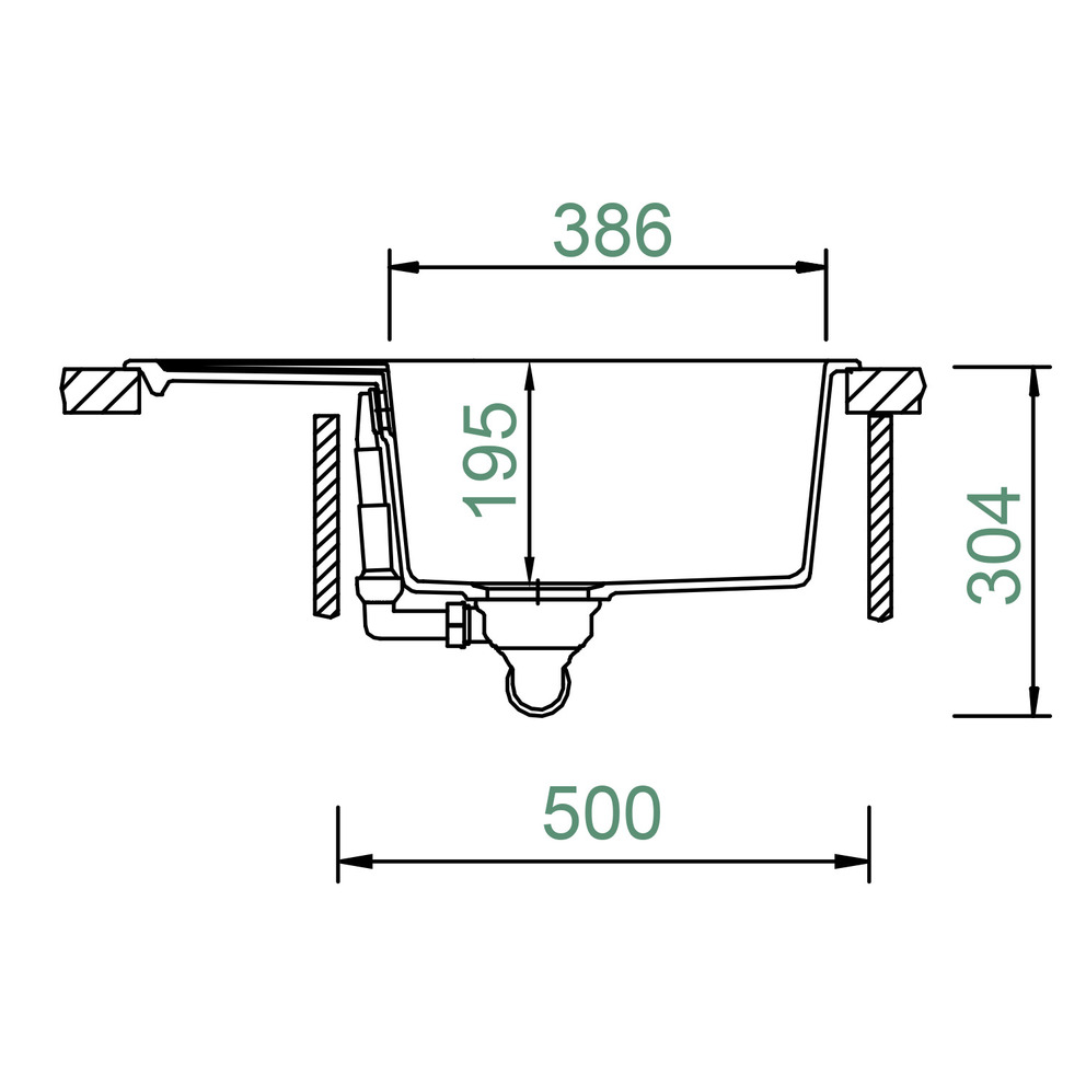 Beckeninnenmaß: 386 x 436 x 195 mm