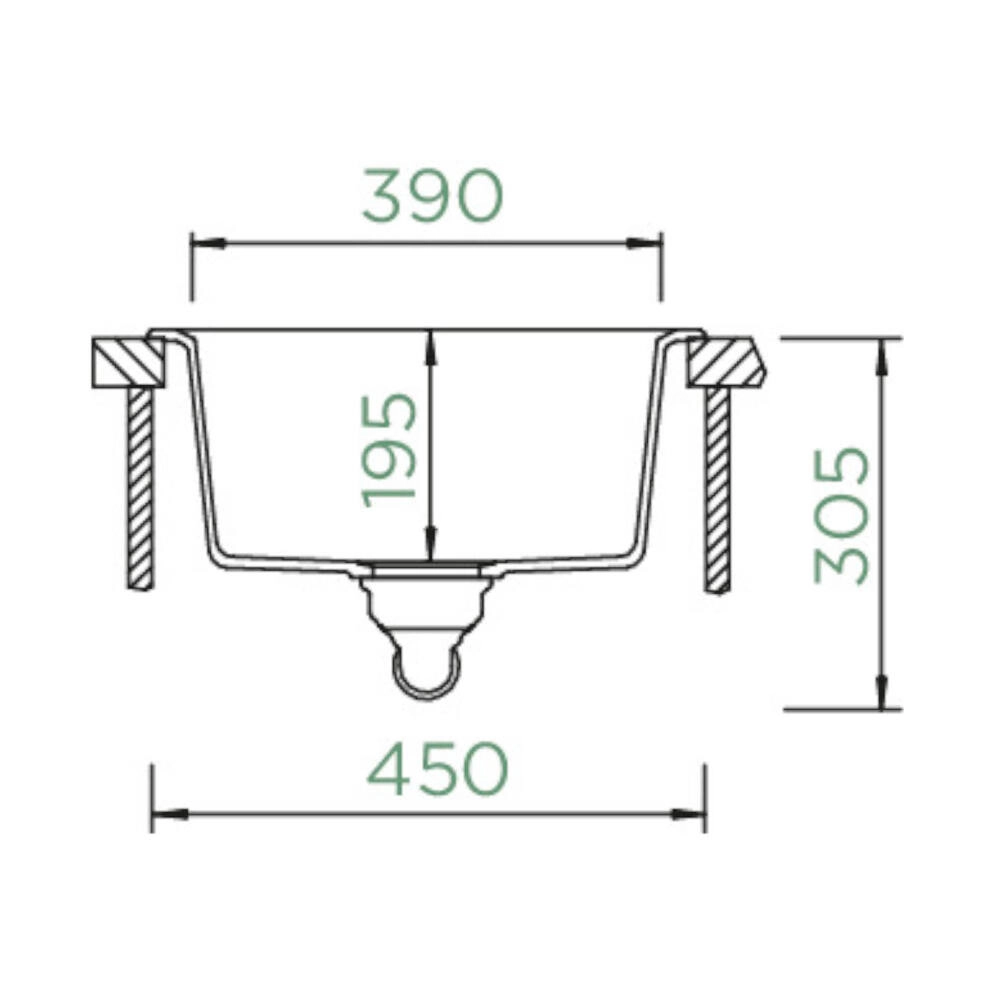 Beckeninnenmaß: 390 x 347 x 195 mm