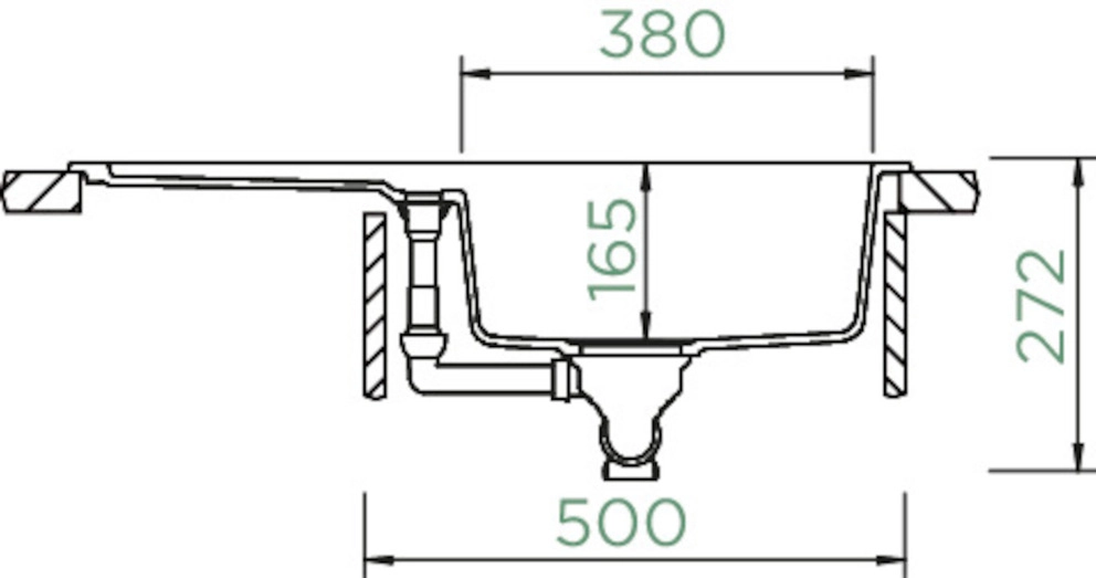 Beckeninnenmaß: 380 × 428 × 165 mm