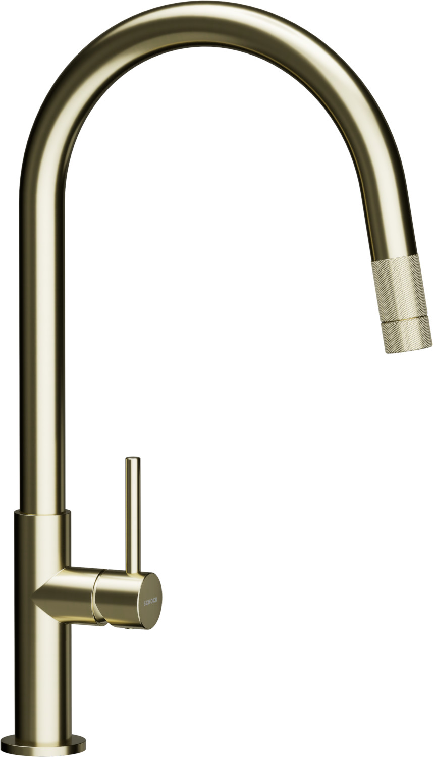 Ausziehbare Armatur mit dem Anschluss einer Festauslauf-Variante.
