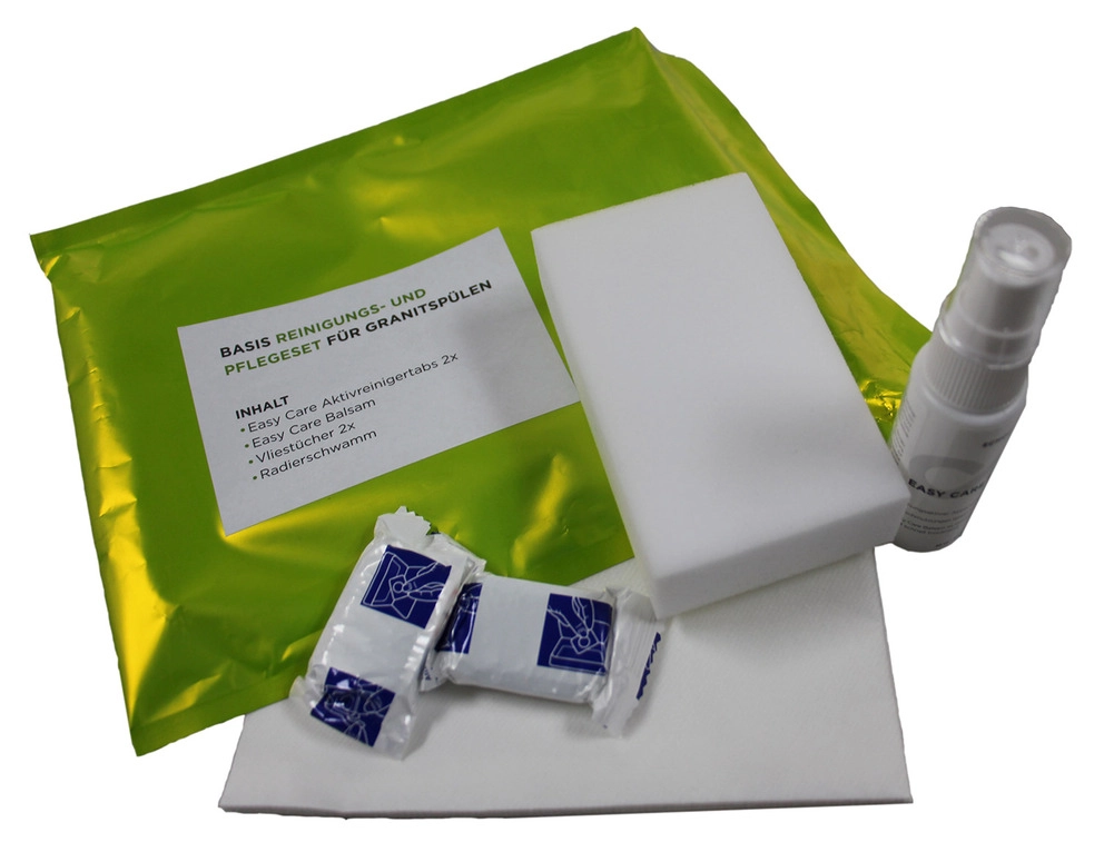 Inhalt: 2x Aktivreinigertabs, Easy Care Balsam, 2x Vliestücher, Radierschwamm