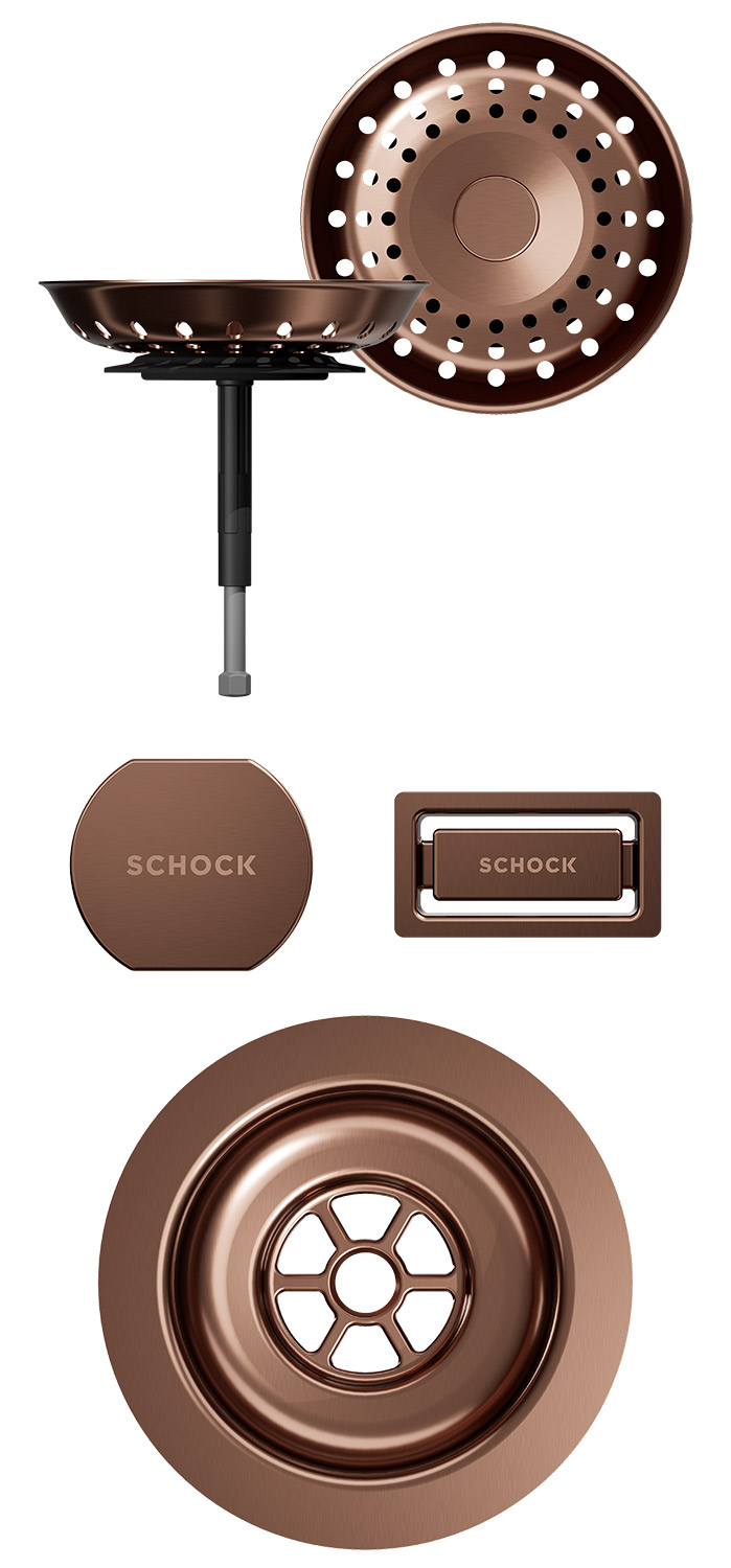 Sichtteile bestehend aus Drehgriff für Exzenterbetätigung, Siebkorb, Schmutzsieb und Überlaufblende passend zum Spülenmodell.