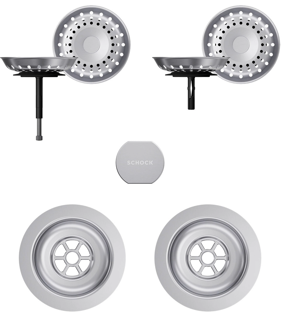 Bei Sichtteilen in Edelstahl wird kein Siebkorb mitgeliefert, da dieser bereits in der Standardausführung vorhanden ist.