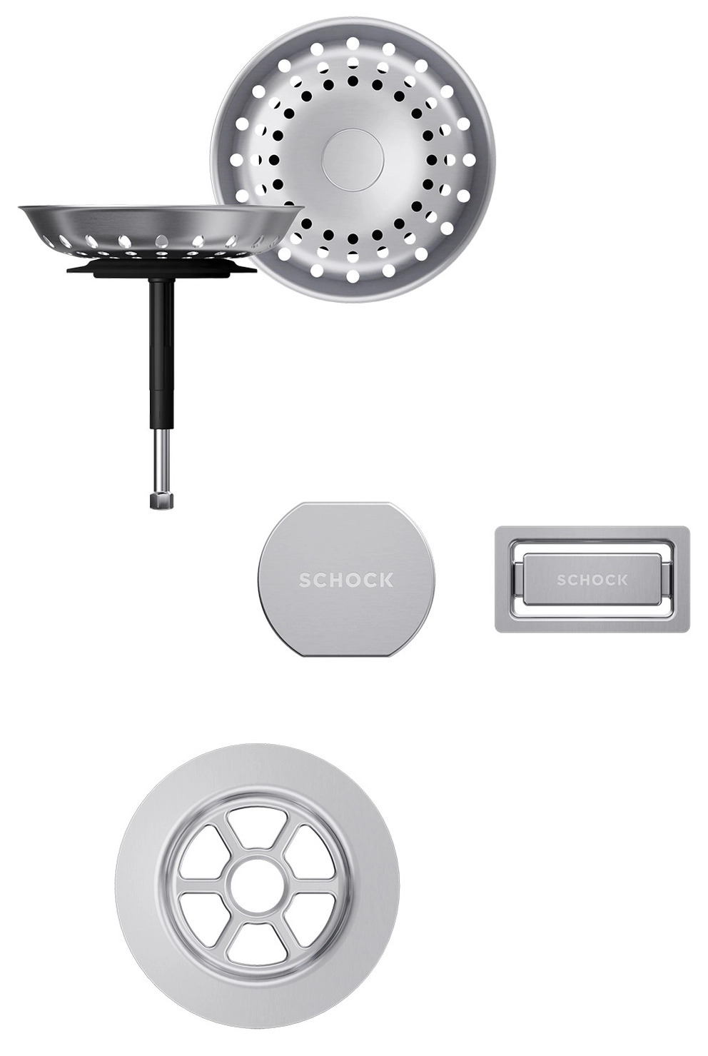Bei Sichtteilen in Edelstahl wird kein Siebkorb mitgeliefert, da dieser bereits in der Standardausführung vorhanden ist.