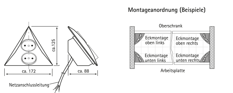 Steckdosen zur Montage in der Ecke