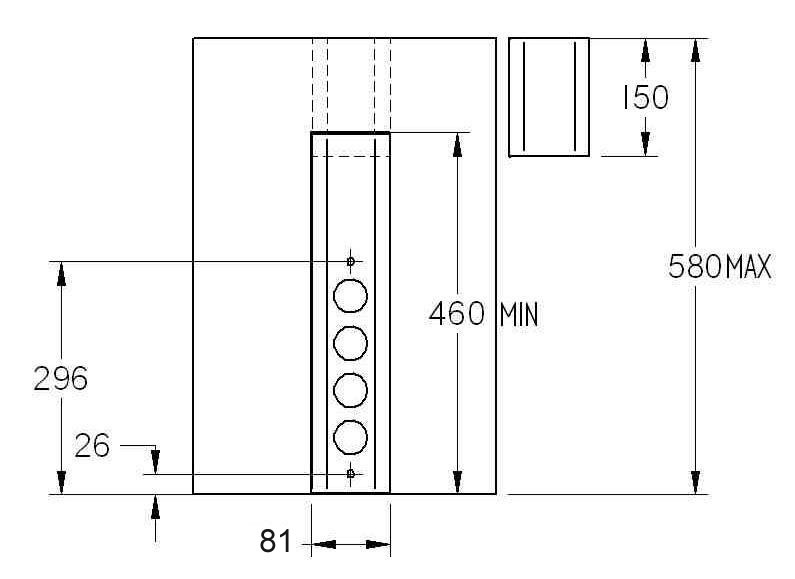 Mittels Teleskopstück Längenausgleich bis 580 mm möglich.