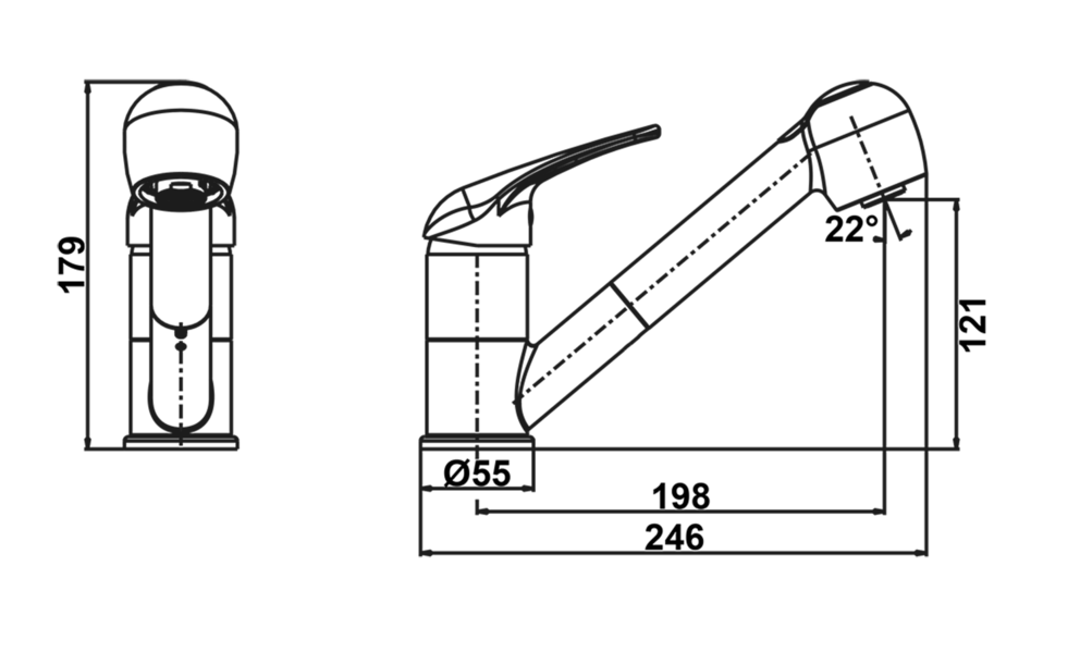Herausziehbare 2-fach verstellbare Geschirrbrause mit