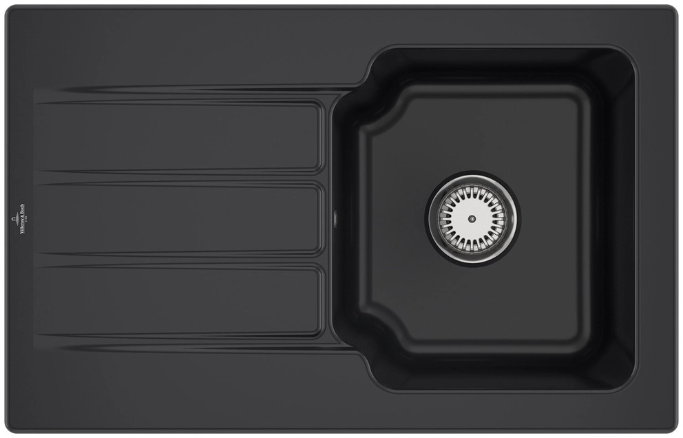 inklusive Ablaufgarnitur mit Handbetätigung, aus Keramik, 800 x 510 mm, Pure Black, CeramicPlus