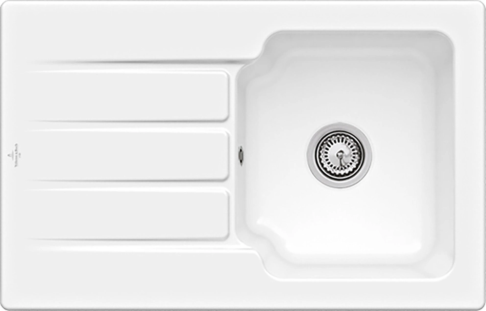 inklusive Ablaufgarnitur mit Handbetätigung, aus Keramik, 800 x 510 mm, Snow White, CeramicPlus